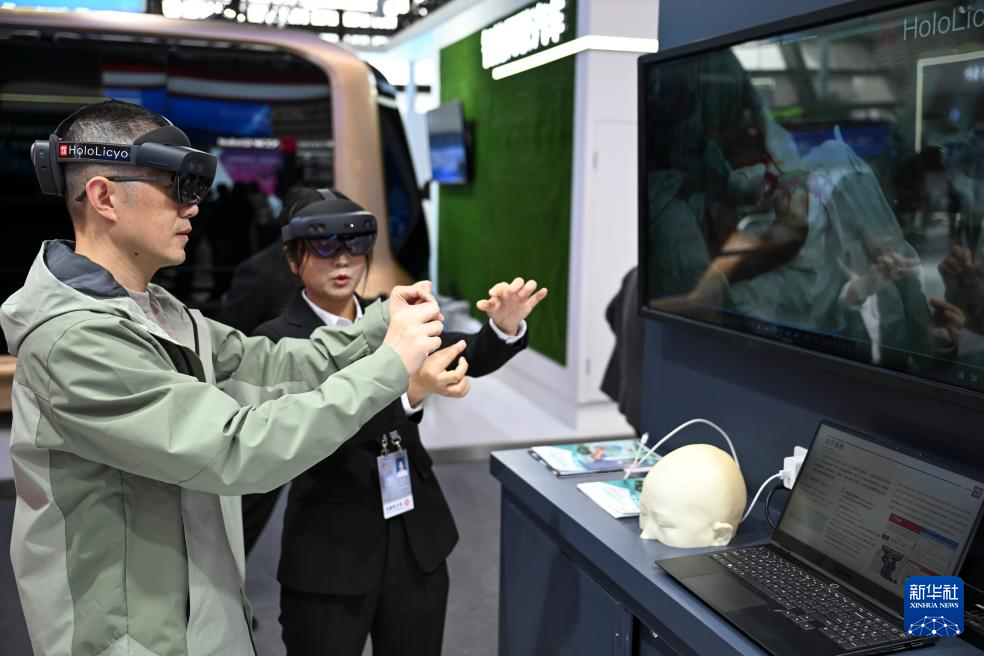 11月19日,在2024年世界互聯(lián)網(wǎng)大會“互聯(lián)網(wǎng)之光”博覽會上,參觀者體驗(yàn)一款全息智能醫(yī)學(xué)影像系統(tǒng)做手術(shù)的過程。