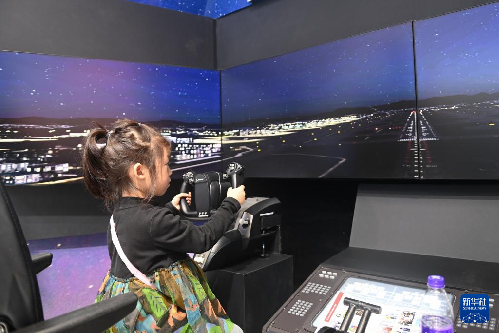 11月19日,在2024年世界互聯(lián)網(wǎng)大會“互聯(lián)網(wǎng)之光”博覽會上,小朋友在數(shù)字飛行模擬艙體驗(yàn)操作飛機(jī)。