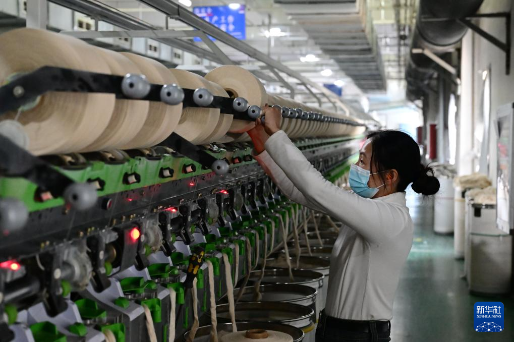 10月25日,工作人員在安徽省天助紡織科技集團(tuán)股份有限公司的生產(chǎn)車間里工作。新華社記者 周牧 攝