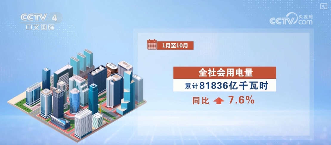 前10月全社會(huì)用電量同比增長7.6%