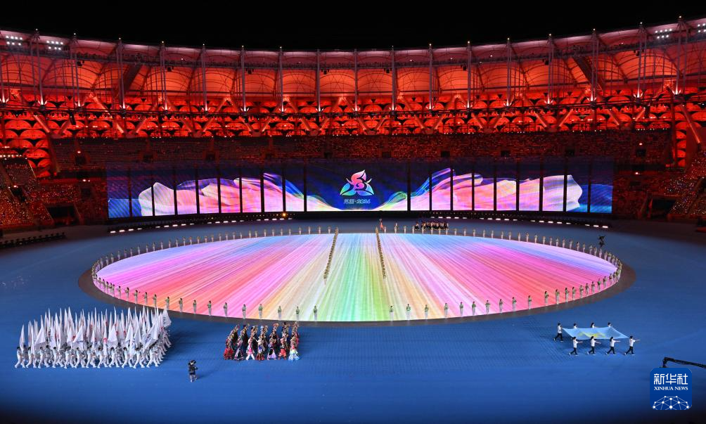 11月22日,中華人民共和國(guó)第十二屆少數(shù)民族傳統(tǒng)體育運(yùn)動(dòng)會(huì)會(huì)旗方陣在開(kāi)幕式上入場(chǎng)。
