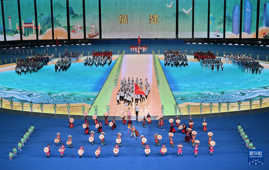 11月22日,福建省代表團(tuán)在開(kāi)幕式上入場(chǎng)。