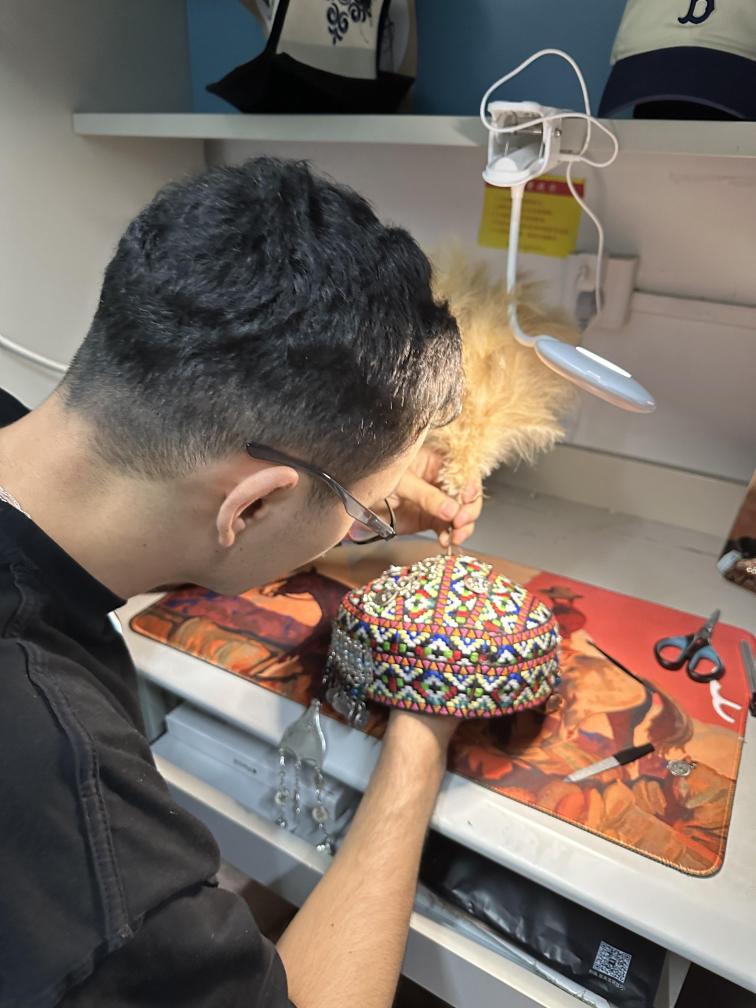 進入大學(xué)學(xué)習工業(yè)設(shè)計專業(yè)后,唐寶開始對第二批國家級非遺“哈薩克族服飾”為代表的民族傳統(tǒng)文化藝術(shù)有了更多思考。在老師們的支持下,他在學(xué)校成立了“哈薩克非遺工坊”,以建立數(shù)據(jù)庫的方式專注搜集設(shè)計、活化利用非遺傳承。