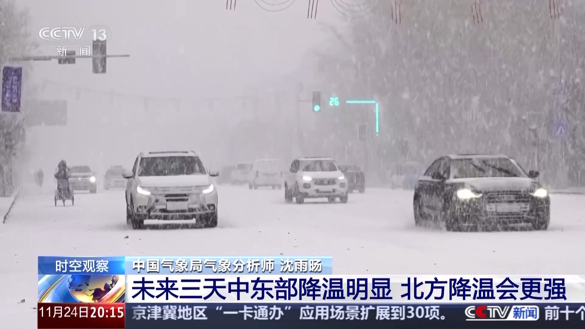 這次寒潮因?yàn)橛欣渑諝獾南嘤?,所以雨雪天氣也是比較廣泛。北方的不少地方會(huì)出現(xiàn)降雪或者是雨雪相態(tài)的轉(zhuǎn)換,尤其是在內(nèi)蒙古的東部、東北這一帶,25到26日要防范強(qiáng)降雪天氣,而且東北地區(qū)還是以濕雪為主,很容易出現(xiàn)道路結(jié)冰。提醒大家出門(mén)時(shí)多關(guān)注路況,注意安全。