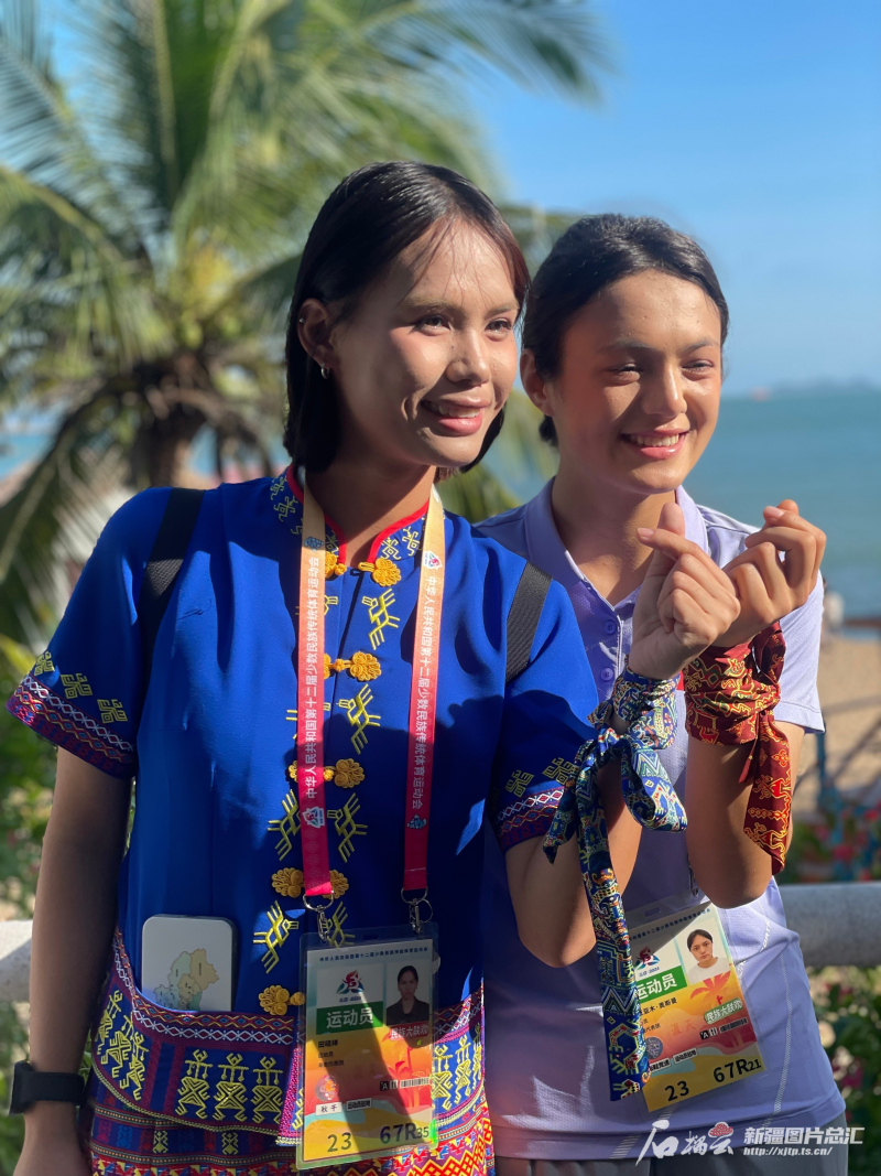 “活動(dòng)特別有趣,一直持續(xù)到黃昏,可以說是一個(gè)浪漫又具有海邊風(fēng)情的民族團(tuán)結(jié)大聯(lián)歡?!毙陆韴F(tuán)秋千競賽項(xiàng)目運(yùn)動(dòng)員巴合提古麗·珠曼說,從開始的歡迎儀式就特別驚喜,道路兩邊有各個(gè)民族的志愿者,跳著舞、敲著牛皮鼓迎接大家。