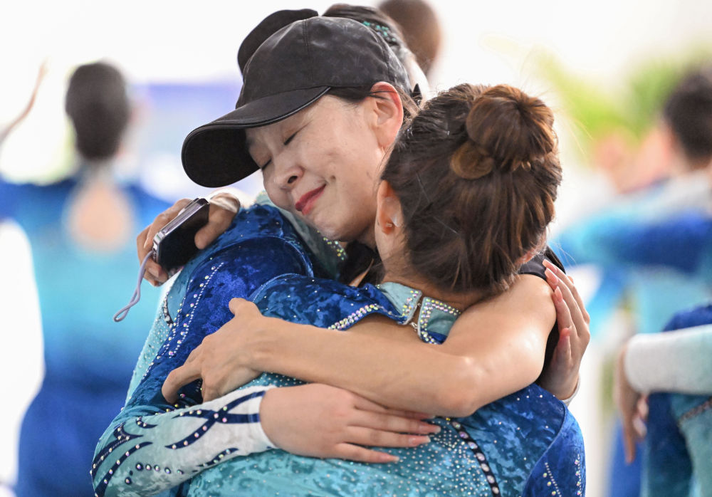 11月28日,上海隊(duì)教練韓春英(中)在成績(jī)公布后擁抱隊(duì)員激動(dòng)落淚。最終,上海隊(duì)獲得二等獎(jiǎng)。