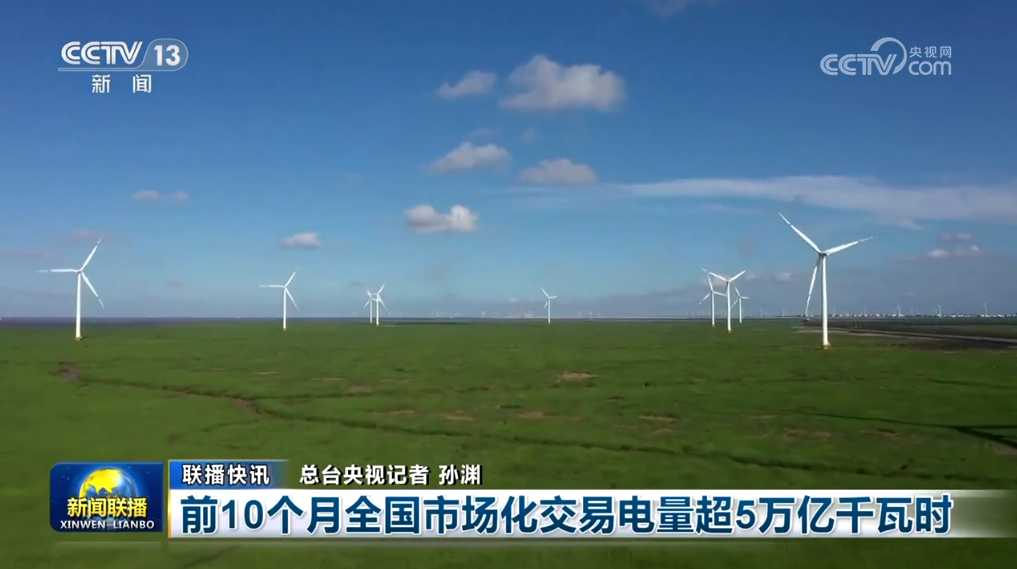 前10個(gè)月全國市場(chǎng)化交易電量超5萬億千瓦時(shí)
