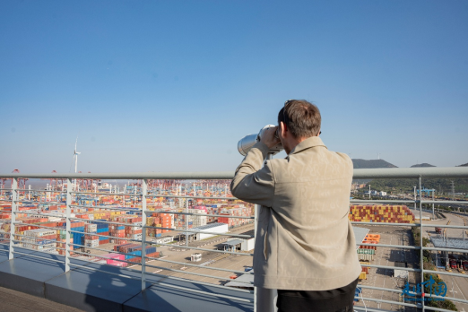 記者們站在觀景平臺,通過望遠(yuǎn)鏡親眼見證了全球最繁忙集裝箱港口之一的現(xiàn)代化作業(yè),他們爭相與壯觀的碼頭場景合影留念。來自哈薩克斯坦《誠實(shí)報(bào)》社會(huì)文化部主任納烏雷茲別克·薩爾沙耶夫在接受環(huán)球網(wǎng)記者采訪時(shí)說道“寧波舟山港的運(yùn)作效率和智能化管理令人贊嘆,它無疑是全球物流行業(yè)的標(biāo)桿?!?/p>