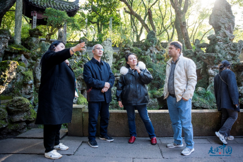 天一閣作為中國現(xiàn)存最古老的私人藏書樓之一,深深吸引了外國記者的注意。天一閣內(nèi)保存了豐富的古籍與文化遺產(chǎn),展現(xiàn)了寧波作為“文化名城”的深厚底蘊(yùn)。講解員向記者們詳細(xì)地介紹了天一閣的歷史背景和文化價(jià)值,講述了“書藏古今、港通天下”的文化內(nèi)涵,使記者們對寧波的文化歷史有了更深的理解。