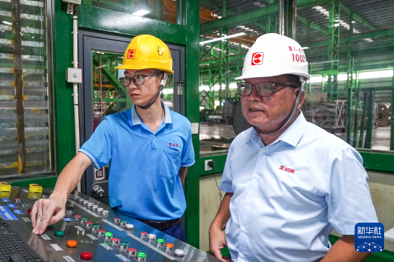 陳富澤在車間檢查設(shè)備運(yùn)行情況。新華網(wǎng) 肖和勇 攝