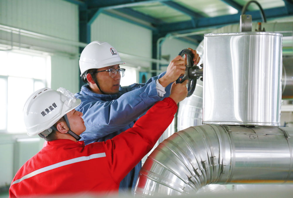 2024年2月22日,在新疆庫(kù)車市,中國(guó)石化新星新疆綠氫新能源有限公司工作人員對(duì)設(shè)備進(jìn)行巡檢。新華社發(fā)(吐爾松·托胡提 攝)