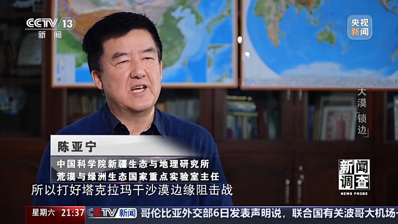 中國科學院新疆生態(tài)與地理研究所荒漠與綠洲生態(tài)國家重點實驗室主任 陳亞寧:和田地區(qū)大概就是256萬人,由于人均耕地面積少,經(jīng)濟發(fā)展相對也滯后。也是脫貧攻堅成果鞏固和拓展難度最大的一個區(qū)域,所以在打好塔克拉瑪干沙漠邊緣阻擊戰(zhàn),對和田地區(qū)的經(jīng)濟社會發(fā)展、農(nóng)民增收是有著重要意義的。我們帶著隊伍進行了將近兩個多月的實體調(diào)研,那我們調(diào)查什么呢?第一這里的地理環(huán)境、自然生態(tài)條件、水資源情況,同時我們也收集到他們當?shù)剡@么多年防沙治沙的一些成功經(jīng)驗和教訓,我們也進行了訪談,結(jié)果我們就提出了一種從不同生態(tài)條件、不同沙害和不同水源條件下如何防沙治沙,實現(xiàn)沙漠鎖邊等一些建議、措施和總體規(guī)劃。