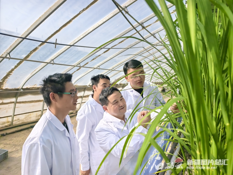 11月20日,和田地區(qū)和田縣萬畝設施農業(yè)基地沙漠溫室水稻種植大棚內,中國農業(yè)科學院都市農業(yè)研究所首席科學家楊其長團隊正在查看水稻長勢。胡禮政攝