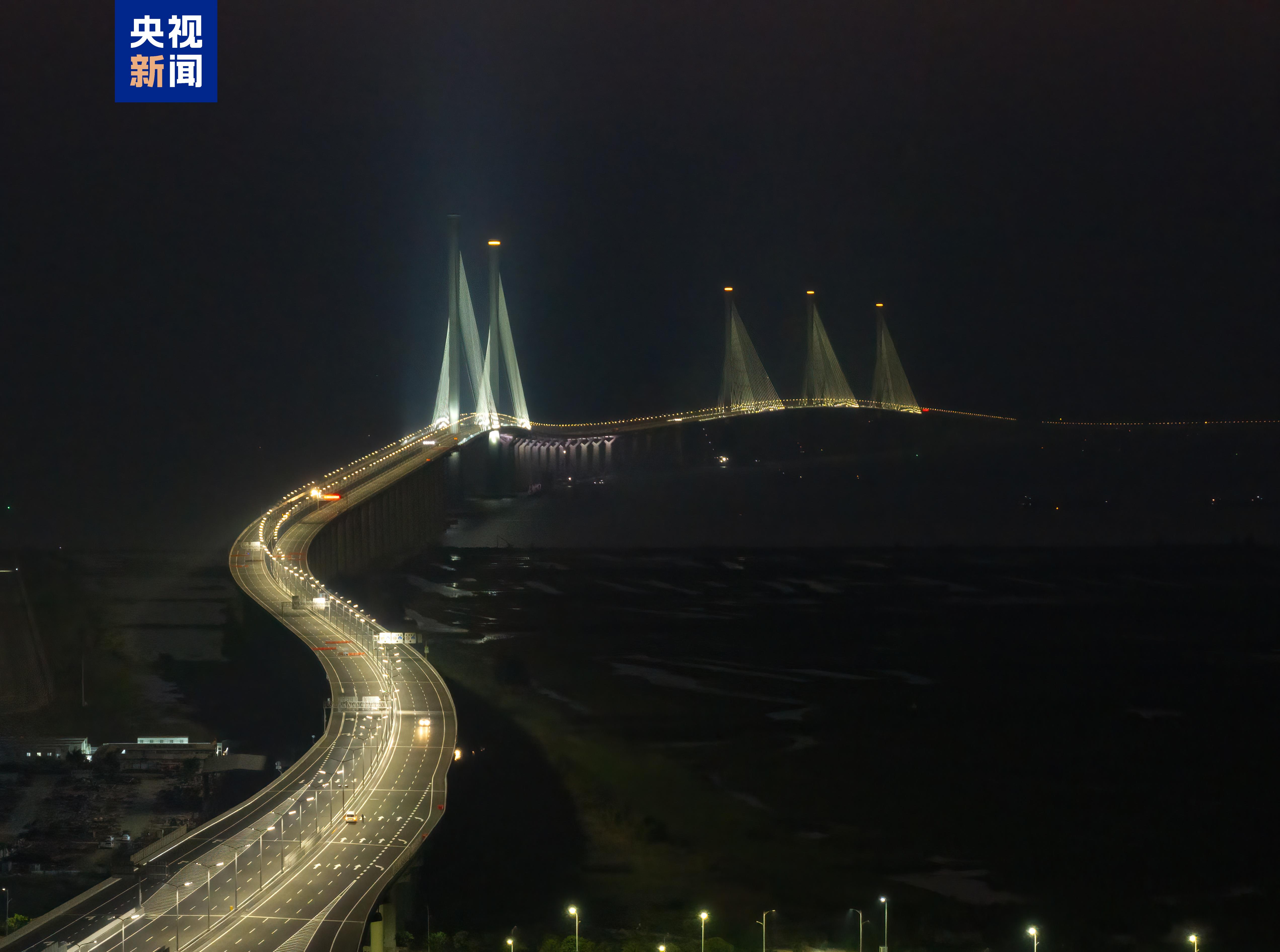 12月8日,黃茅??绾Mǖ廊€亮燈,柔和明亮的燈光宛如海上銀河,在黃茅海海域璀璨生輝。