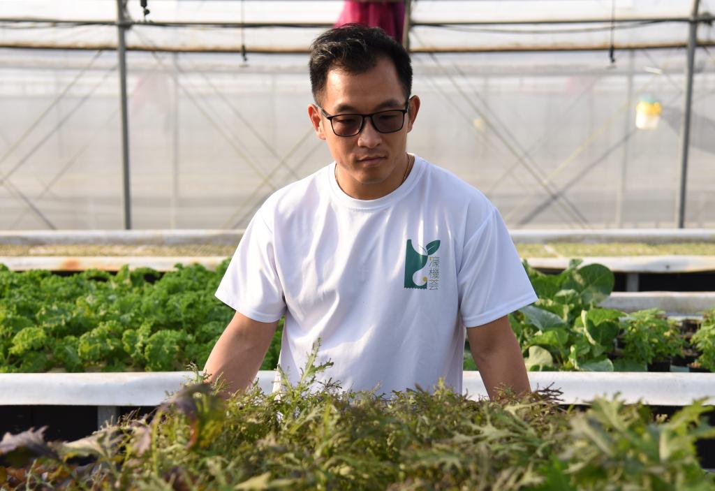 11月28日,孫振鴻在農(nóng)場內(nèi)查看蔬菜的生長情況。新華社記者 洪澤華 攝