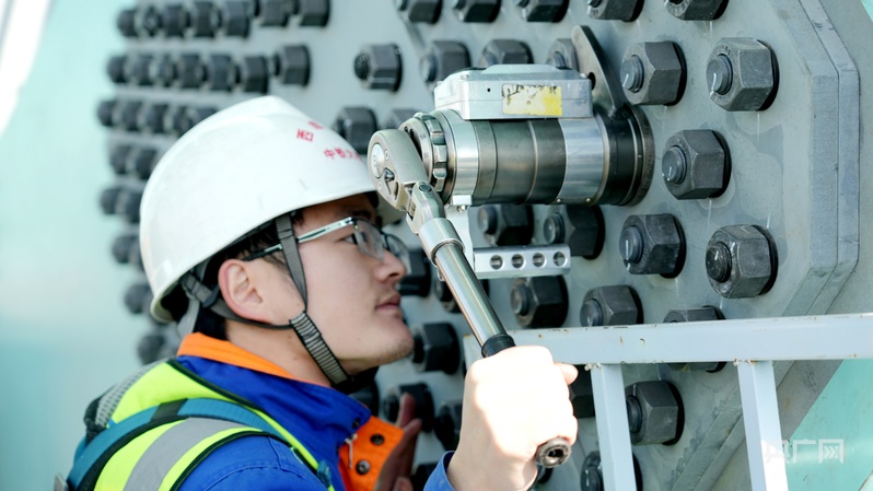 何映正在檢測(cè)螺栓扭矩(央廣網(wǎng)記者 汪曉青 攝)