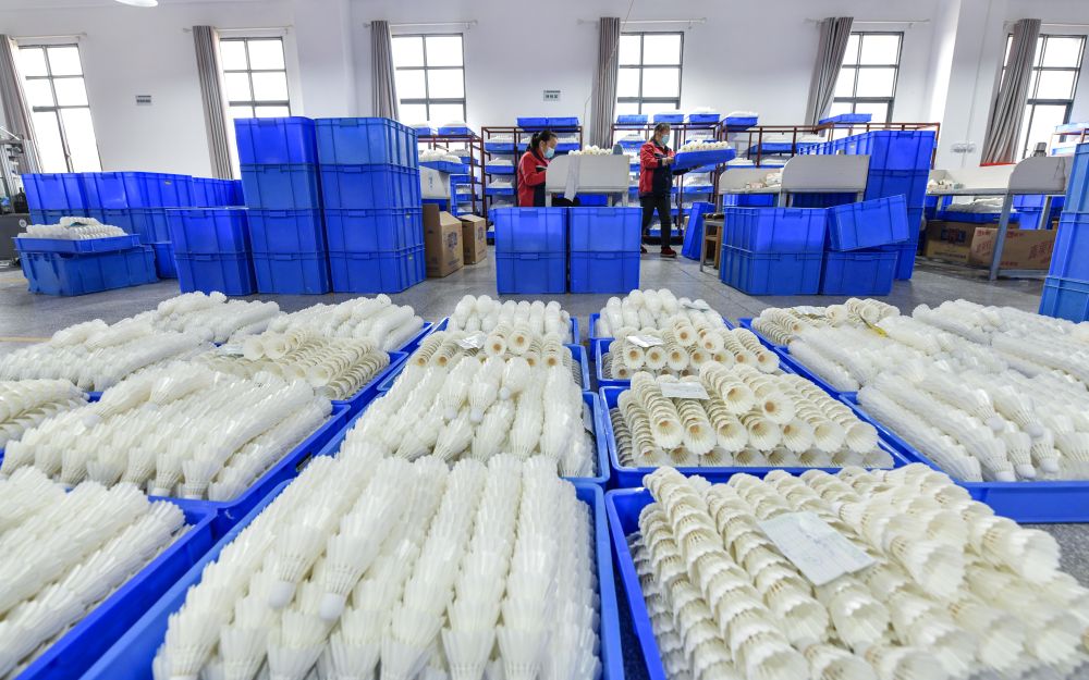 在貴州大桐利體育用品有限公司生產(chǎn)車間,110多名工人正在操作全新的生產(chǎn)設(shè)備趕制訂單?!坝鹈蜻\(yùn)動(dòng)持續(xù)火熱,我們廠房面積由原來的7000平方米,擴(kuò)大到了現(xiàn)在的2萬平方米?!惫矩?fù)責(zé)人張偉平說,公司主要生產(chǎn)高端羽毛球,80%的產(chǎn)品用于出口,主要銷往馬來西亞、泰國(guó)、英國(guó)等國(guó)家和地區(qū)。