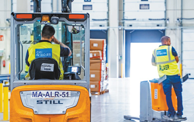 菜鳥(niǎo)西班牙分撥中心工作人員進(jìn)行倉(cāng)內(nèi)操作。石晨曦?cái)z