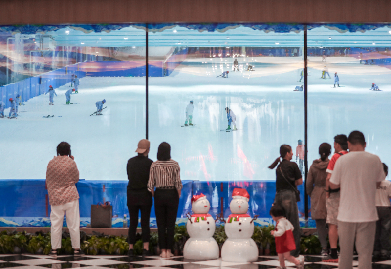 室內(nèi)雪場(chǎng)也同樣熱鬧。