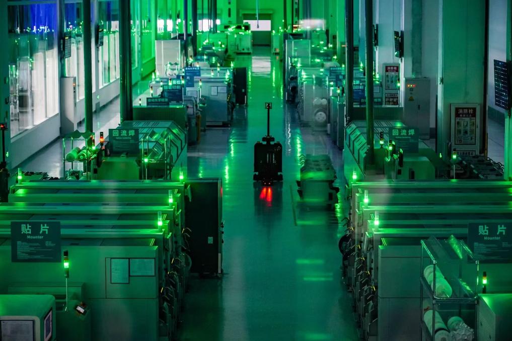 無數(shù)綠燈依次閃爍,少量工人巡檢其間……在這座達(dá)到業(yè)界標(biāo)桿水平的零碳智造工廠,“黑燈”模式下運(yùn)作的電腦主板生產(chǎn)線繁忙卻有序?!拔覀兓凇恕叀啤W(wǎng)—智’新IT技術(shù)架構(gòu),使生產(chǎn)效率提升200%。猜猜看,現(xiàn)在下線一塊主板、一臺(tái)筆記本能有多快?”聯(lián)想天津工廠廠長(zhǎng)于小建給出的答案是,“9秒!”