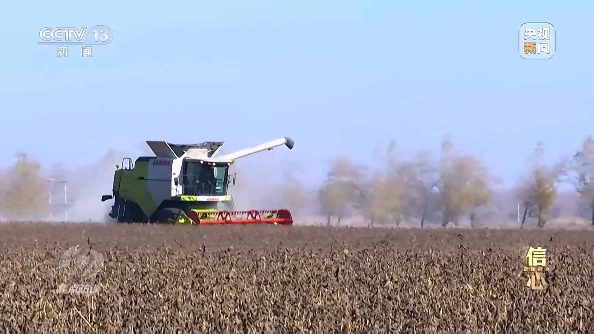 農(nóng)業(yè)是一切發(fā)展的基礎(chǔ),今年我國糧食不僅連續(xù)第21年迎來豐收,而且首次超過了1.4萬億斤。位于湖北荊門的一片農(nóng)田,豐收的色彩濃郁飽滿,今年這里實施大豆玉米帶狀復(fù)合種植,第一次采用6行玉米4行大豆相間種植,實現(xiàn)了一地雙收,畝產(chǎn)首次超過了1200斤。廣東清遠,水稻田里一片金黃,走近去看,粒粒飽滿,這里種植的是絲苗米。在收割機的幫助下,稻谷顆粒歸倉。通過現(xiàn)代化農(nóng)業(yè)技術(shù)的應(yīng)用,這里確保了水稻穩(wěn)產(chǎn)高產(chǎn),農(nóng)業(yè)產(chǎn)業(yè)化跑出了加速度,僅一季晚稻的畝產(chǎn)量就超過了1200斤,和去年相比增加了近10%。2024年,我國糧食再獲豐收,單產(chǎn)提升是重要的支撐。民以食為天,把中國飯碗牢牢端住,讓人倍感踏實。