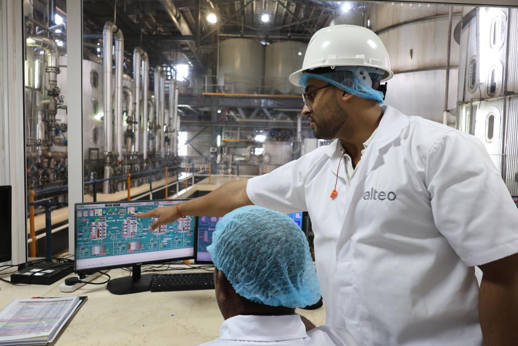 2024年7月24日,在毛里求斯東部弗拉克區(qū)一家糖廠,工人在車間內(nèi)監(jiān)測蔗糖的生產(chǎn)。新華社記者凌馨攝
