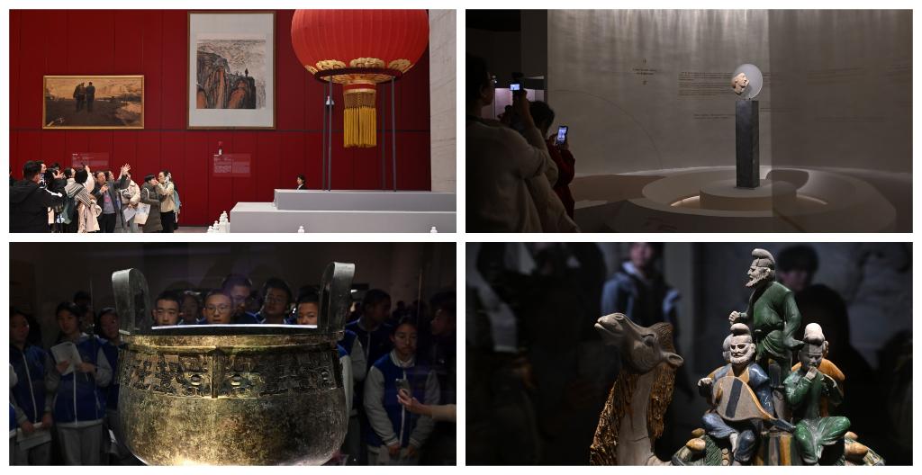 拼圖:走進中國國家博物館感受“文博熱”:(左上)“風展紅旗如畫——館藏紅色經(jīng)典文物展”(右上)“美的多元——古希臘的藝術(shù)與生活”展覽(左下、右下)“古代中國”基本陳列展