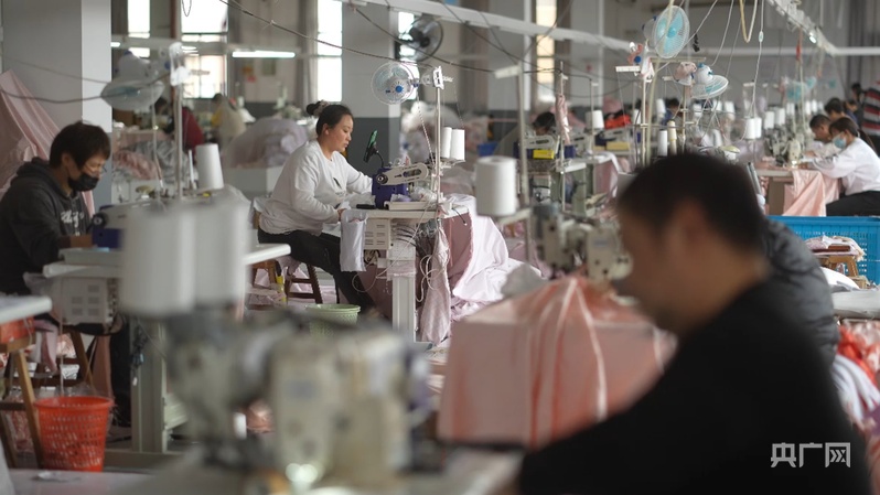 家紡企業(yè)車間里,工人在生產(chǎn)線上忙碌(央廣網(wǎng)記者 楊夢奎 攝)