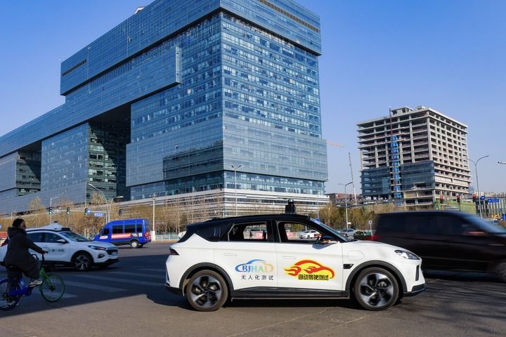 車內(nèi)無(wú)人自動(dòng)駕駛測(cè)試車輛在北京亦莊公開道路測(cè)試。(受訪者供圖)