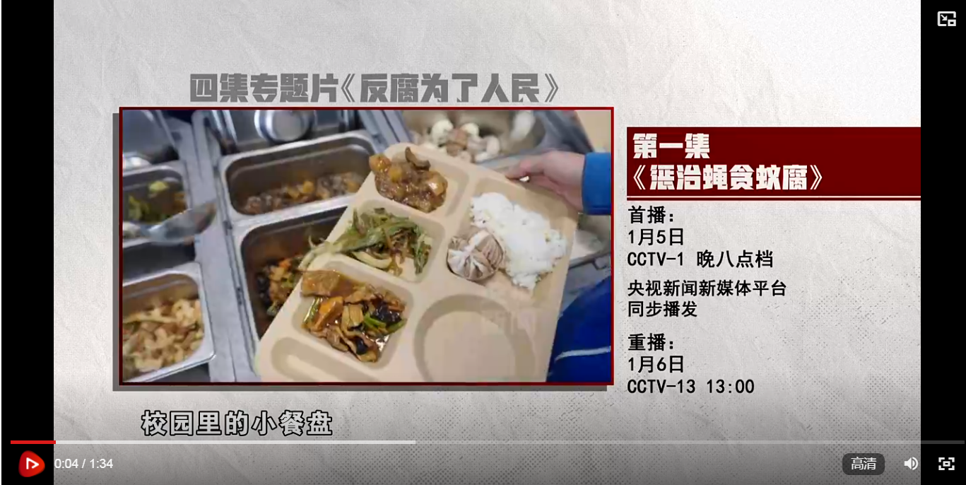習(xí)近平總書記強(qiáng)調(diào),凡是群眾反映強(qiáng)烈的問題都要嚴(yán)肅認(rèn)真對(duì)待,凡是損害群眾利益的行為都要堅(jiān)決糾正。二十屆中央紀(jì)委三次全會(huì)上,習(xí)近平總書記對(duì)整治群眾身邊不正之風(fēng)和腐敗問題作出重要指示,要求懲治蠅貪蟻腐,讓群眾有更多獲得感。中央紀(jì)委國(guó)家監(jiān)委堅(jiān)決貫徹黨中央的決策部署,在全國(guó)部署開展群眾身邊不正之風(fēng)和腐敗問題集中整治。電視專題片《反腐 為了人民》第一集《懲治蠅貪蟻腐》,講述紀(jì)檢監(jiān)察機(jī)關(guān)聚焦群眾反映強(qiáng)烈問題,推動(dòng)開展校園餐、高標(biāo)準(zhǔn)農(nóng)田建設(shè)、住房保障和安居工程等整治工作,讓群眾從一個(gè)個(gè)具體問題的解決中感受到整治成果,不斷增強(qiáng)獲得感、幸福感、安全感。央視綜合頻道1月5日晚8點(diǎn)檔播出,央視新聞新媒體平臺(tái)同步播發(fā),敬請(qǐng)關(guān)注。