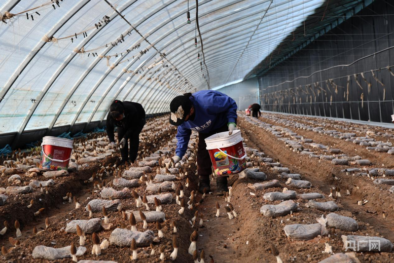 務(wù)工者在采收羊肚菌(央廣網(wǎng)發(fā) 胡建華 攝)