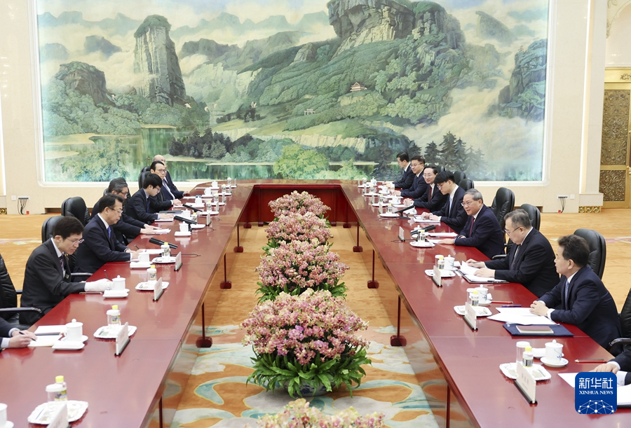 1月15日,中共中央政治局常委、國(guó)務(wù)院總理李強(qiáng)在北京人民大會(huì)堂會(huì)見由日本自民黨干事長(zhǎng)森山裕、公明黨干事長(zhǎng)西田實(shí)仁率領(lǐng)的日本執(zhí)政黨代表團(tuán)。新華社記者 丁海濤 攝