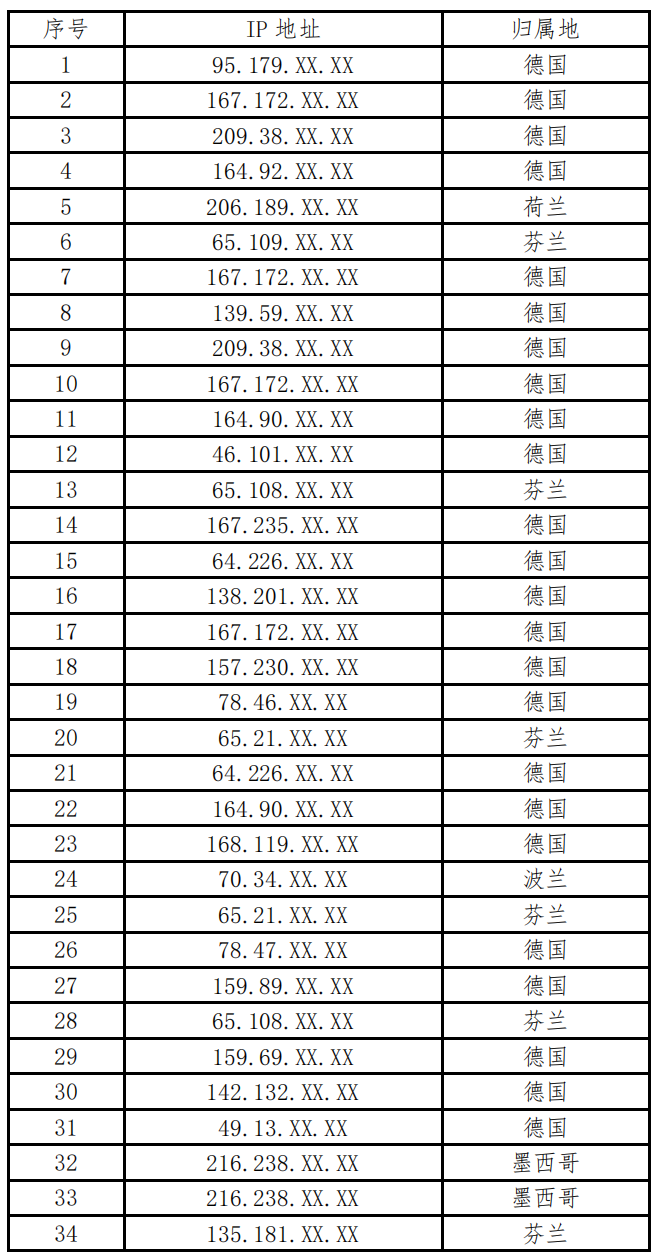2023年5月至2023年10月,攻擊者發(fā)起了30余次網(wǎng)絡(luò)攻擊,攻擊者使用的境外跳板IP基本不重復(fù),反映出其高度的反溯源意識和豐富的攻擊資源儲備。