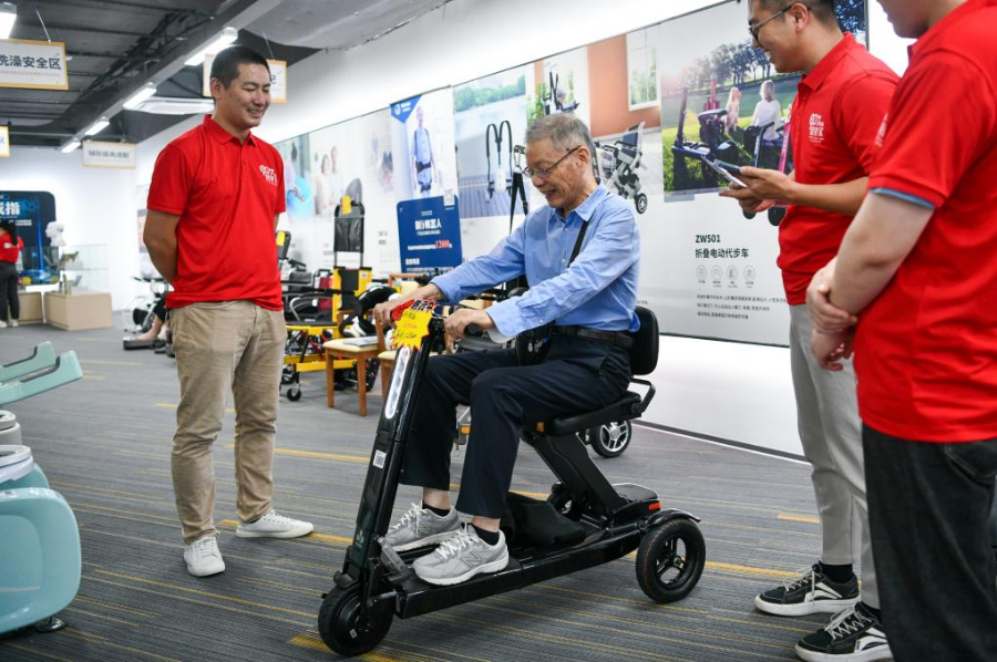 2024年10月12日,一名老人在體驗折疊電動代步車。位于深圳的老年用品商場“深業(yè)·健康匯”向市民開放,展示居家安全、娛樂生活、智能照護(hù)等50余個品類、數(shù)百種智能居家適老產(chǎn)品,吸引眾多市民前來了解、選購。新華社記者梁旭 攝