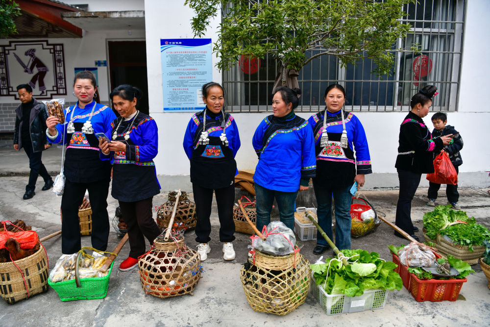 1月18日,在滬昆鐵路六個雞火車站,村民準備登上5640次列車售賣蔬菜和年貨。新華社記者 楊文斌 攝
