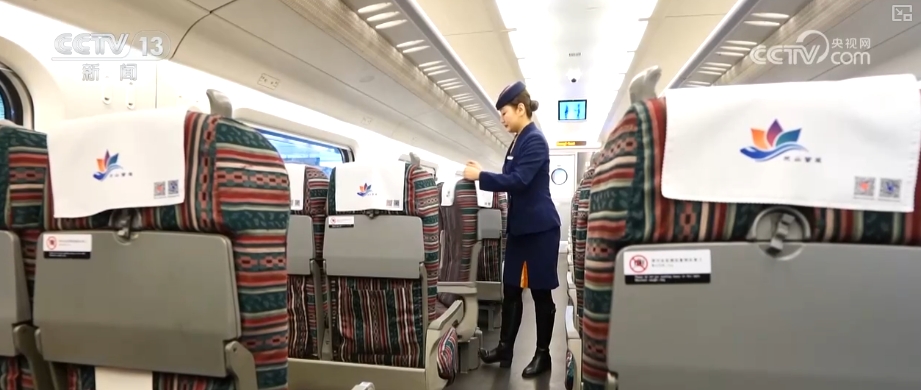 國鐵烏魯木齊局烏魯木齊客運(yùn)段C845次列車員阿依江介紹,動(dòng)車座椅上的這個(gè)犄角叫“羊角把”,是旋轉(zhuǎn)座椅的“小把手”。當(dāng)動(dòng)車組列車抵達(dá)終點(diǎn)站,再返程時(shí)列車運(yùn)行方向變了。為了讓旅客面向列車前進(jìn)的方向,這樣視覺更加舒適,他們會(huì)在終點(diǎn)站把座椅旋轉(zhuǎn)180度。像這樣腳踩座椅下方的旋轉(zhuǎn)腳踏,再用手抓住“羊角把”,輕輕一拉就能調(diào)轉(zhuǎn)座椅方向。
