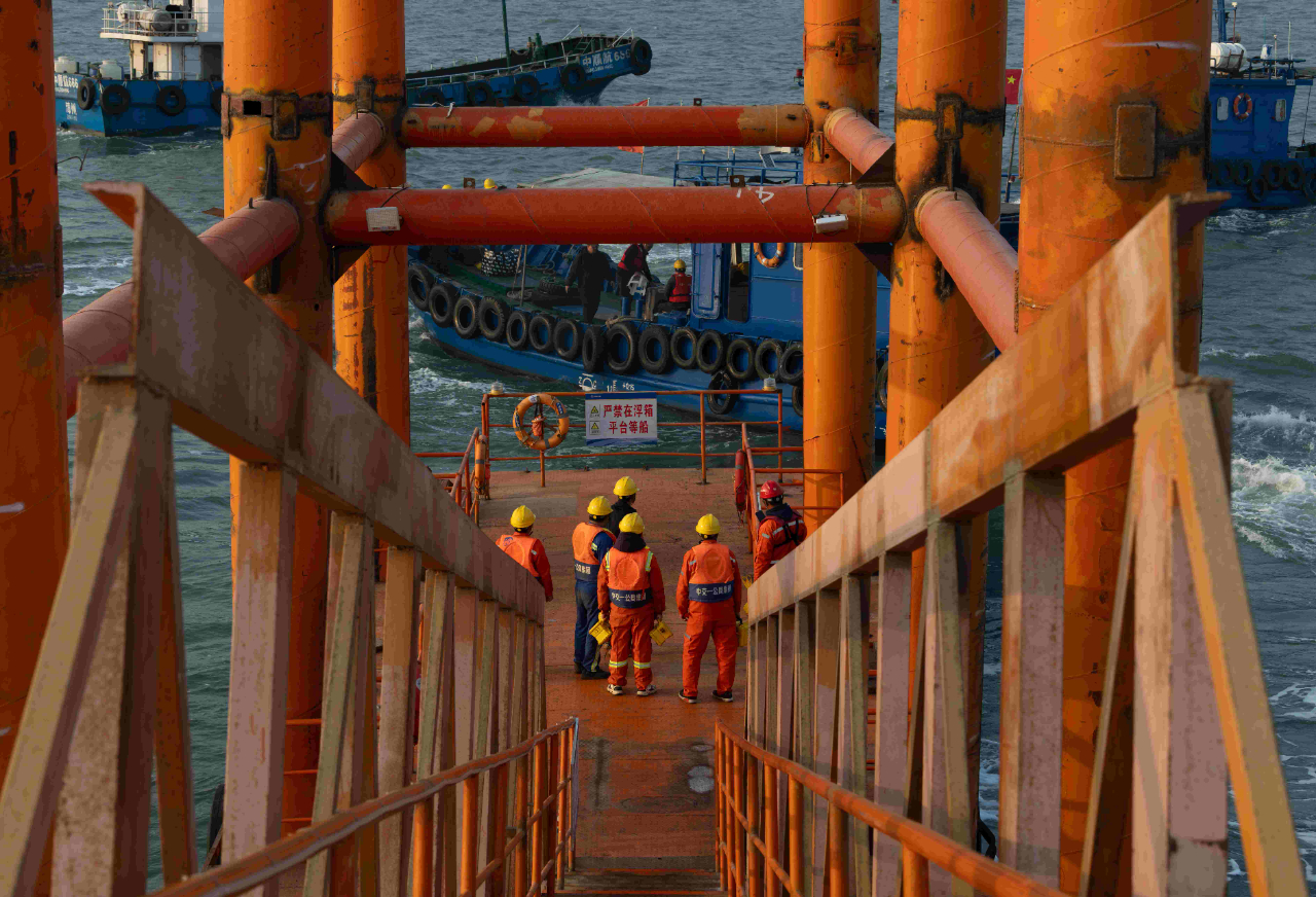 梁芝敬和工友們工作的位置在離岸2海里的海上。一座總面積5萬(wàn)多平方米的海上平臺(tái),構(gòu)成了建設(shè)者們生活和工作的海上空間。工人們加班建設(shè)的劉五店航道橋,是廈金大橋(廈門段)關(guān)鍵控制性工程,全長(zhǎng)1948米,是福建省內(nèi)最大跨徑橋梁,也是福建省首座全離岸式海中懸索橋。春節(jié)前,項(xiàng)目部要完成沉井系梁6000方以及主塔套箱6640方封底混凝土澆筑任務(wù)。為此,梁芝敬和工友們需要不間斷倒班作業(yè),以保障工程任務(wù)能夠如期完成。而記者采訪時(shí),距離梁芝敬上一次離開(kāi)海上平臺(tái),已經(jīng)過(guò)去57天。