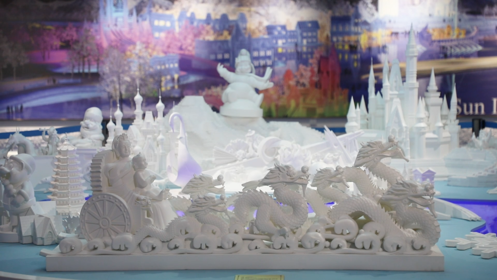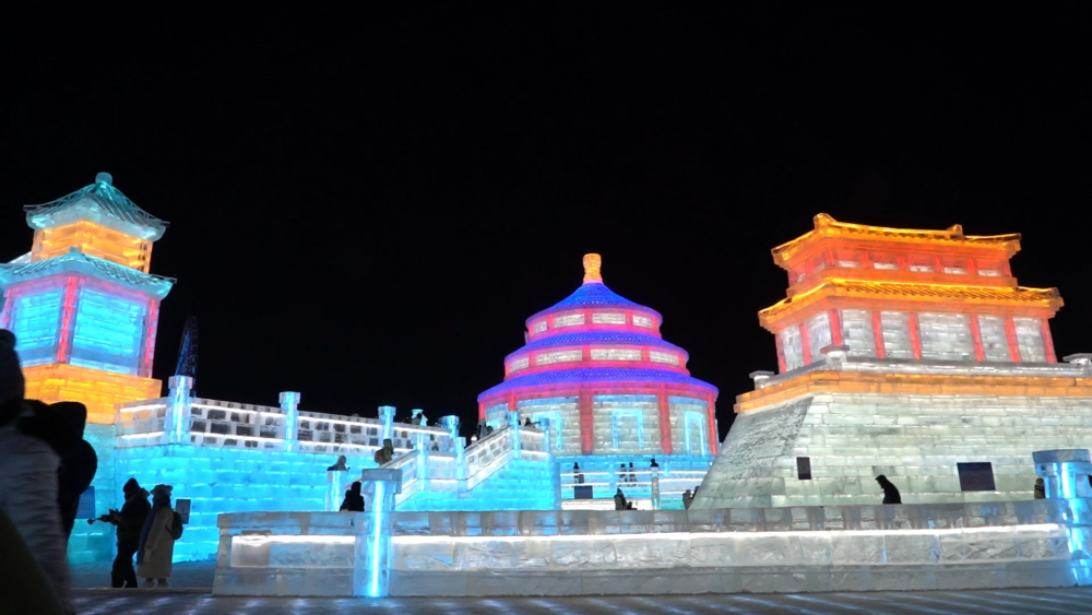 在冰雕雪塑的世界里,一座座以中式建筑為藍本的冰建筑巍峨聳立,哈爾濱不斷向世界展示多姿多彩的國風元素。匠人們憑借精湛技藝,以冰雪為筆,緩緩鋪陳開一幅幅中國歷史文化的壯麗畫卷。