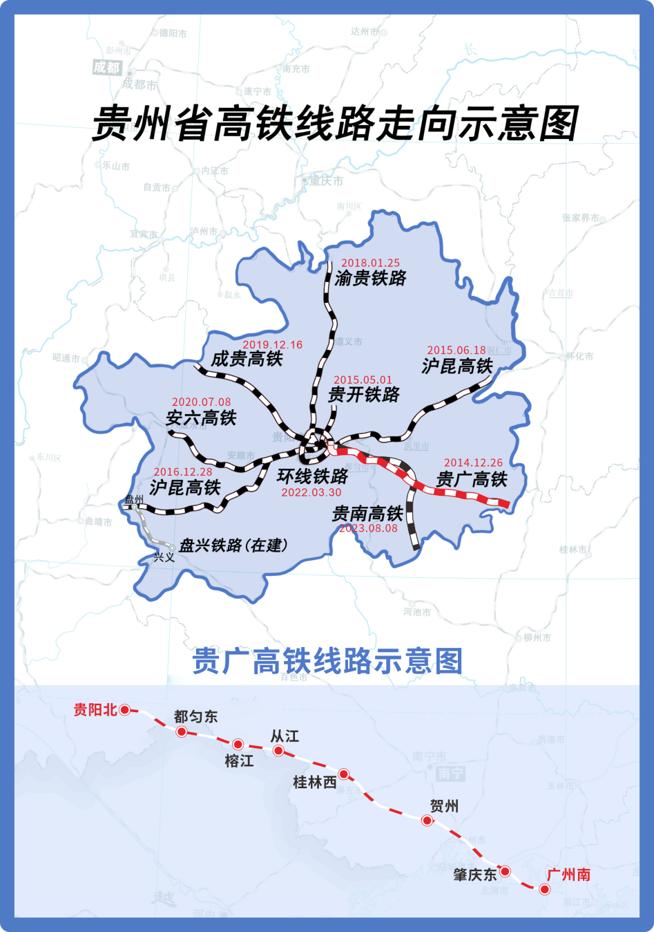貴州高鐵版圖:8條線路支撐“交通大動脈”,日常開行700多趟列車。
