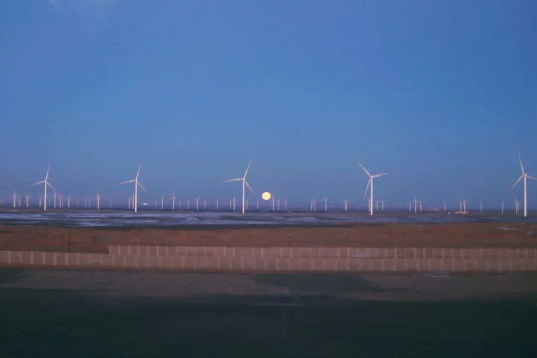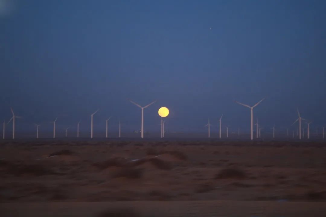 在前往家鄉(xiāng)的列車上經(jīng)過哈密時,我坐在窗邊正吃著泡面,抬頭便看到這絕美月色,我用相機將它定格,而在車廂的另一邊是落日,兩種景色交匯在此,也應(yīng)了窗貼上這句“回家的路,就是最美的風(fēng)景”。