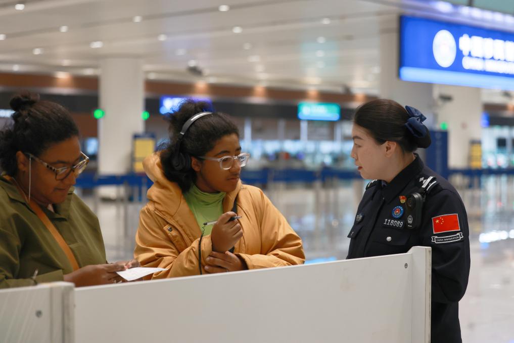 2024年12月17日起,過境免簽外國人停留時(shí)間延長為240小時(shí)。大興機(jī)場邊檢站進(jìn)一步優(yōu)化提升通關(guān)體驗(yàn),率先實(shí)現(xiàn)同步辦理臨時(shí)入境許可、邊檢入境手續(xù)的“一站式”服務(wù),旅客無需二次排隊(duì)。