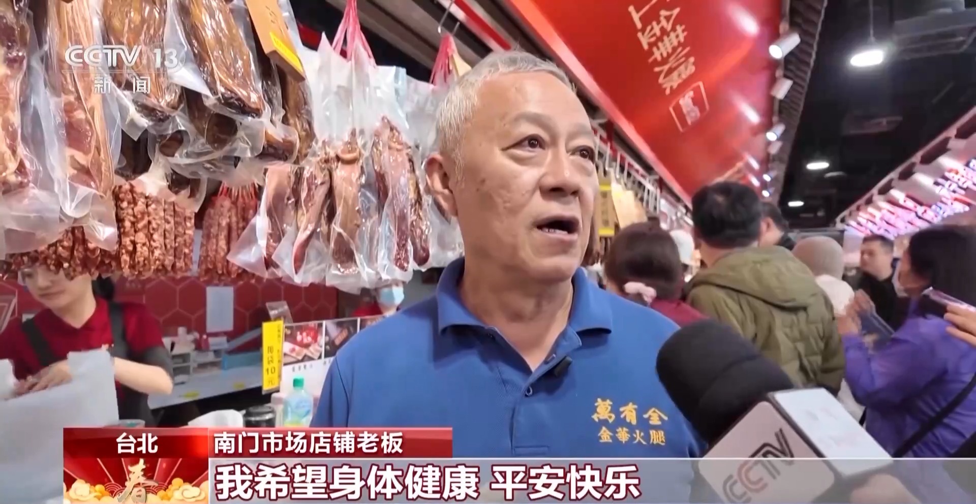 南門市場店鋪老板:我今年正好70歲,我希望身體健康,平安快樂,祝兩岸同胞新年快樂。