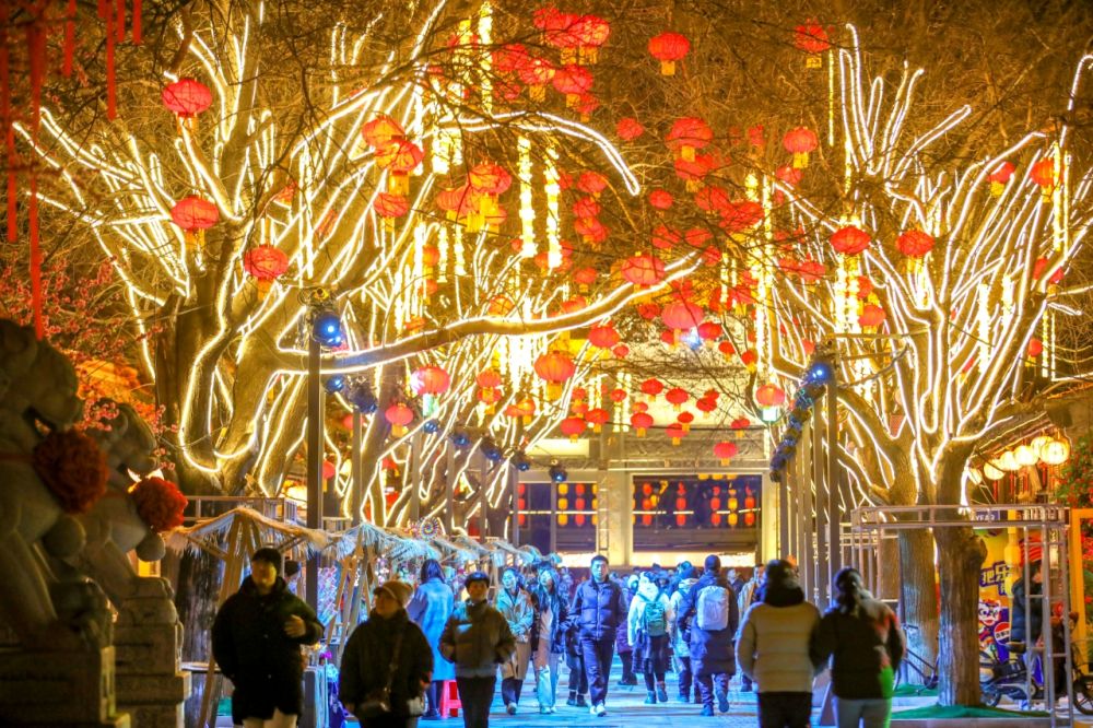 如意大街牌坊下的門簾卷起,一聲吆喝“開市啦”,瞬間吸引街上游人的目光。身著特色服飾的“店家”熱情地招呼迎客,將特色果仁、酥糖、熱茶湯等介紹給往來行人,賣冰糖葫蘆、精致糕點的“游商”穿梭其中,人們仿佛置身于舊時過年的熱鬧場景之中。