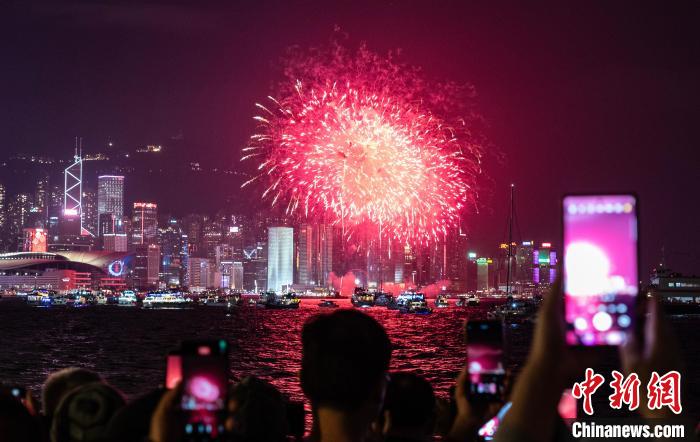 20時(shí)20分左右,煙花匯演進(jìn)入終章《瑞蛇豐年》,在背景音樂(lè)《金蛇狂舞》聲中,“游星”煙花直奔夜空,形成“靈蛇狂舞”的壯觀景象。隨后,所有躉船將剩余煙花密集燃放,維港夜空霎時(shí)流光溢彩,與摩天大樓的現(xiàn)代夜景交相輝映。