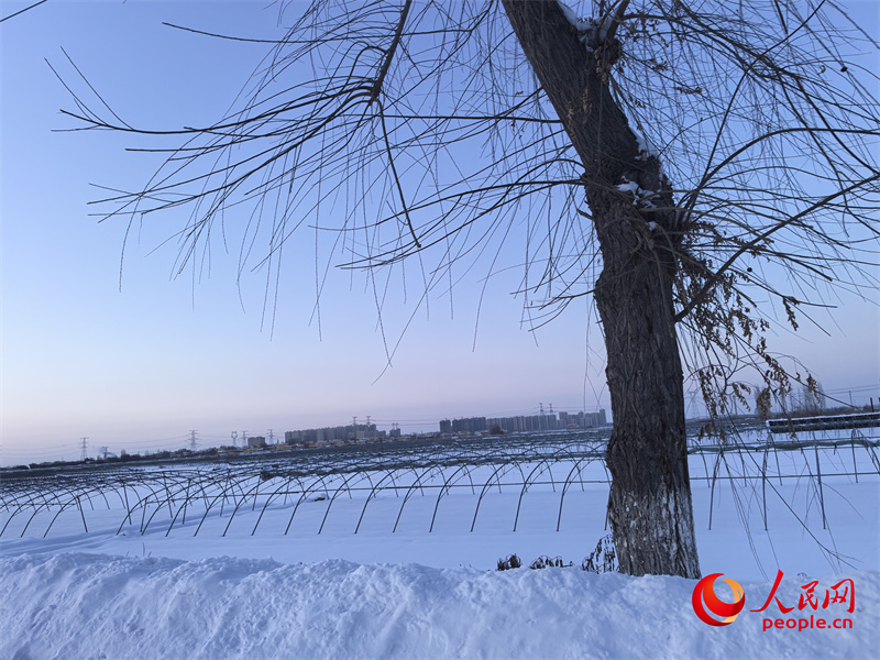 天山腳下,青格達(dá)湖邊,下了一天一夜的大雪剛停,劉建軍就去了隔壁新聯(lián)村的清潔能源智能溫室育苗大棚,看看前幾天育的茄子發(fā)芽了沒。