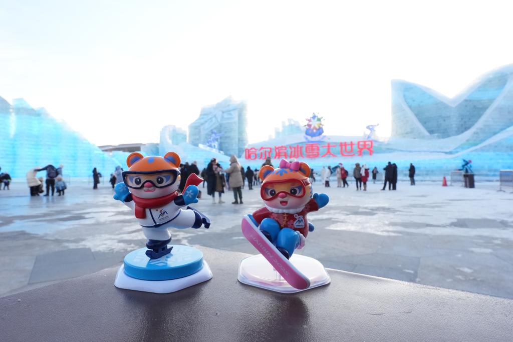 這是2月1日在哈爾濱冰雪大世界拍攝的“濱濱”和“妮妮”。新華社記者 王松 攝