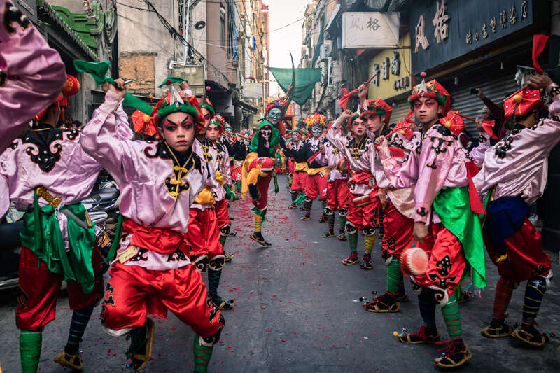 即便一直以松散的形式存在,甲子英歌憑著小鎮(zhèn)人的熱情和情懷,在唱念做打、武術(shù)臉譜等多個行當傳了一代又一代,師傅傳徒弟、父傳子。