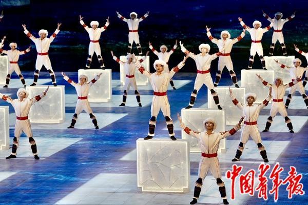 2月7日,哈爾濱,亞冬會開幕式上的文藝演出。中青報(bào)·中青網(wǎng)記者 李雋輝/攝