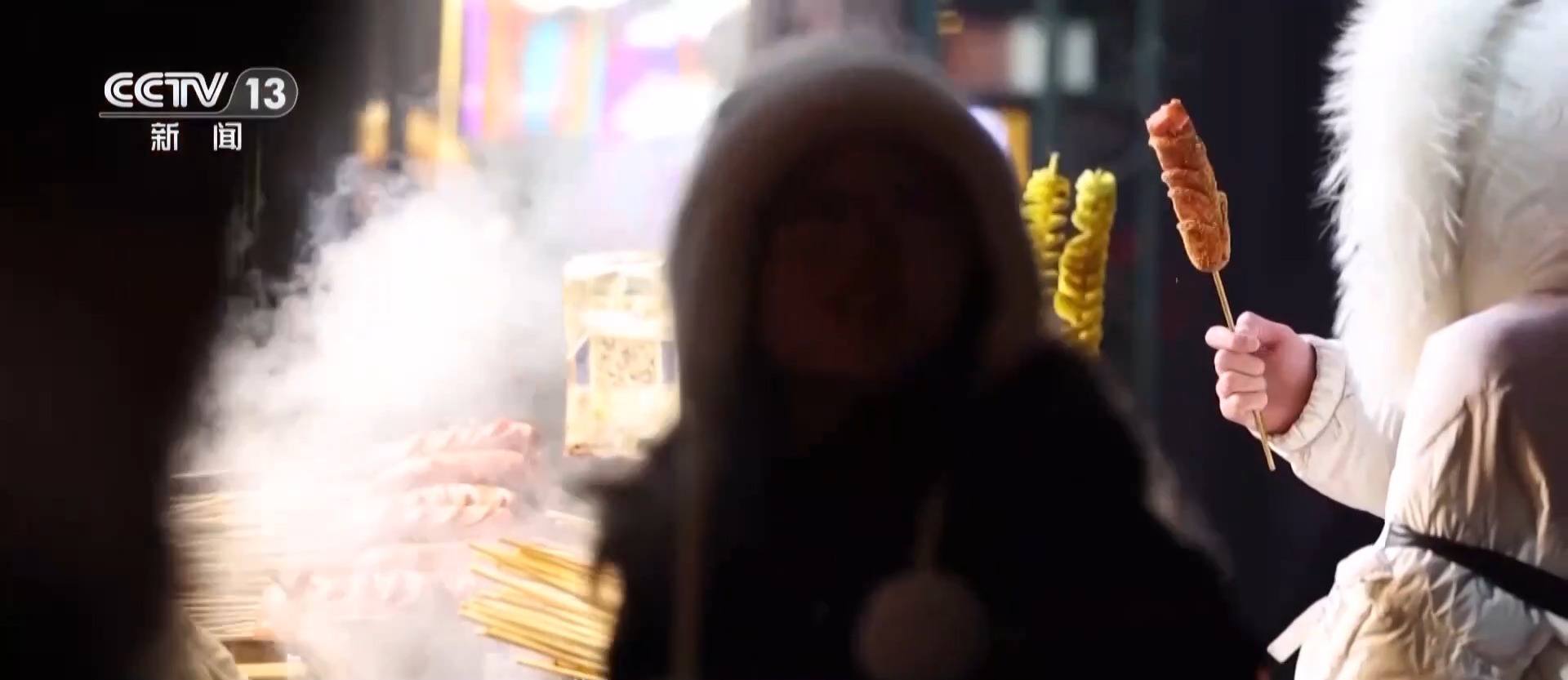 在前面不遠(yuǎn)處,還有紅腸飄來(lái)的陣陣香氣。紅腸作為哈爾濱特色美食,有著百年歷史,是游客必嘗的美味。美食和冰雪旅游在這里相互交融,為哈爾濱的夜晚增添了別樣的煙火氣。