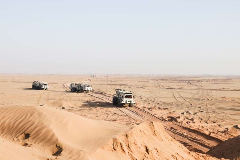 高精度可控震源在工區(qū)進(jìn)行測(cè)試。中國(guó)石油東方物探公司供圖